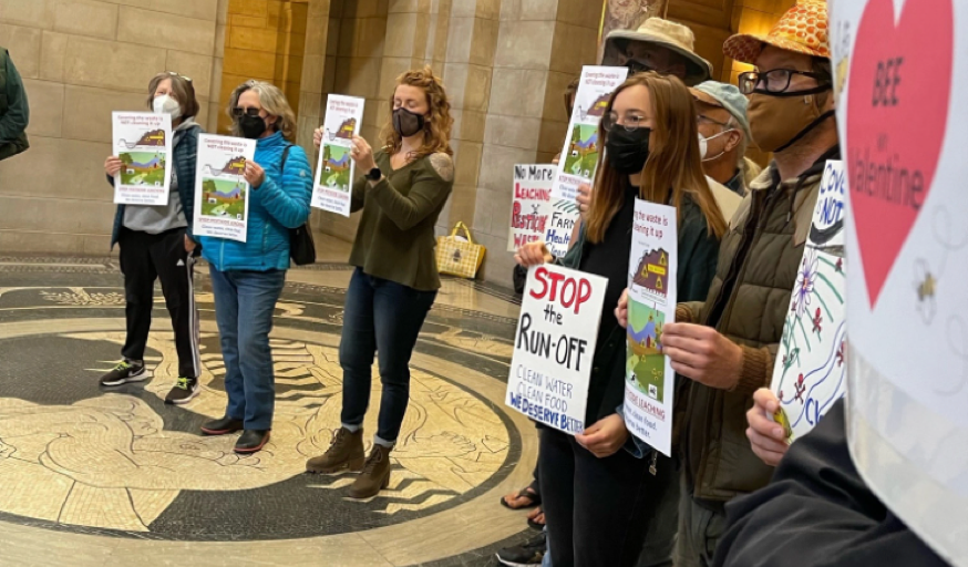 Photo 2: Protestors rally at the Nebraska state capitol in Lincoln in February, calling on lawmakers to establish a special committee to investigate the public health risks of AltEn’s pollution. Courtesy of the Office of Senator Carol Blood