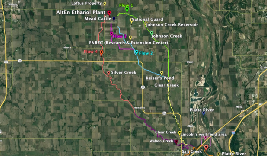 When it rained, runoff from the wet cake also likely transported pesticides and fungicides straight into local waterways, he added. Schalles’ research found four potential pathways from the AltEn site, all of which feed into the Platte River, a water source for numerous Nebraska cities, about 20 miles south of Mead. During dry spells, toxic dust could carry contaminants off of the pile through the air.